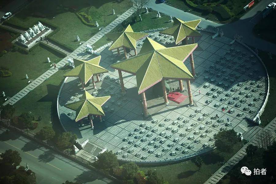 华西村幸福园里的“天下第一钟”,屋顶建成五星形状。