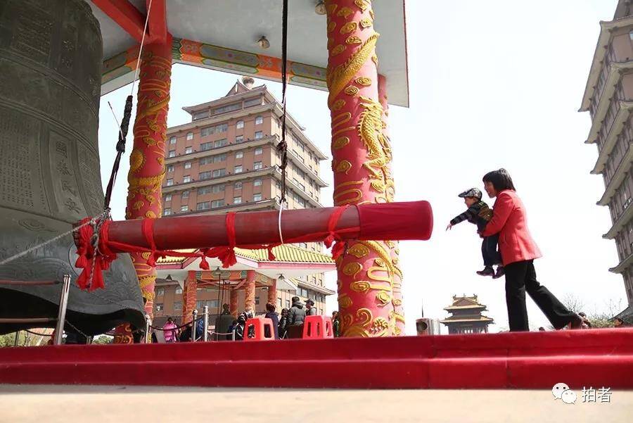 华西村幸福园,游客在玩“天下第一青铜钟”。