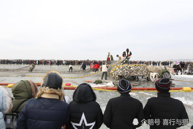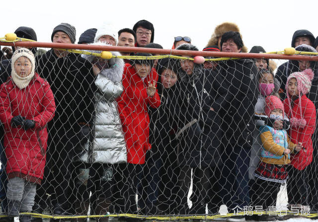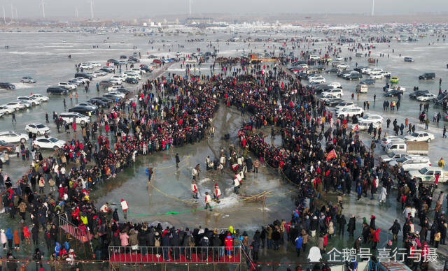 鸟瞰查干湖冬捕现场,两万余人到场,场面壮观。