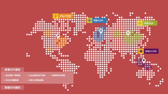 30年多来,爱德基金会在兼顾国内公益的同时,先后与20多个国家和地区近300家机构开展不同形式的合作,进行国际化援助实践。在太平洋岛国密克罗尼西亚,在非洲的马达加斯加,开展了沼气池项目;在尼泊尔、菲律宾、朝鲜、肯尼亚,开展贫困帮扶与灾害救助。