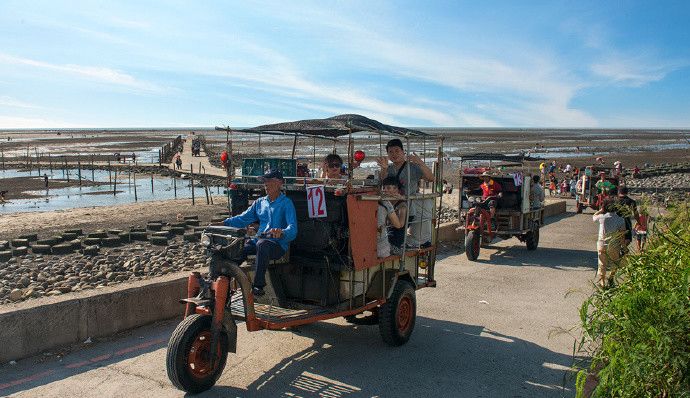 采蚵车是潮间带上的文化创意产业,它将文化创意与生态推广结合,载着游客在未受工业污染的潮间带上进行生态游学。