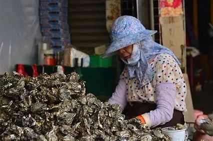 在以前,当地的男性负责打捞和捡拾牡蛎,女性则在家负责挖蚵,并进行装袋贩卖,从而以此维持生计。