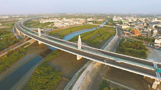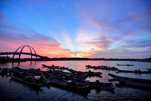 王功渔港的跨港拱桥成弓状,主要功能是用来欣赏港区风光及日落美景。