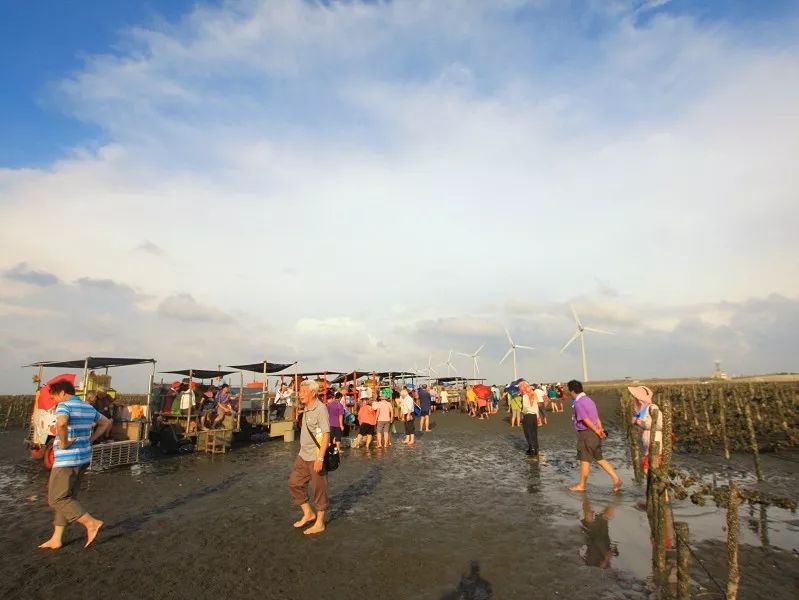 搭乘着采蚵车来到沙地里,在沙地中寻找海洋生物,跟着当地居民导览蚵田,现剥蚵仔品尝。这个活动很适合亲子一起来游玩。