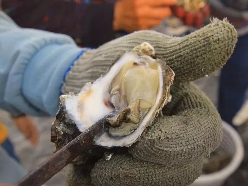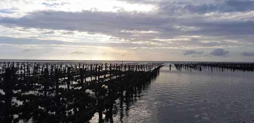 木头上驾着一排排的钓鱼线,线上绑着一个个空壳,而空壳中则孕育着牡蛎,等待着被收成。而且这些牡蛎可不是普通的牡蛎,它们是牡蛎中著名的“王功蚵”。